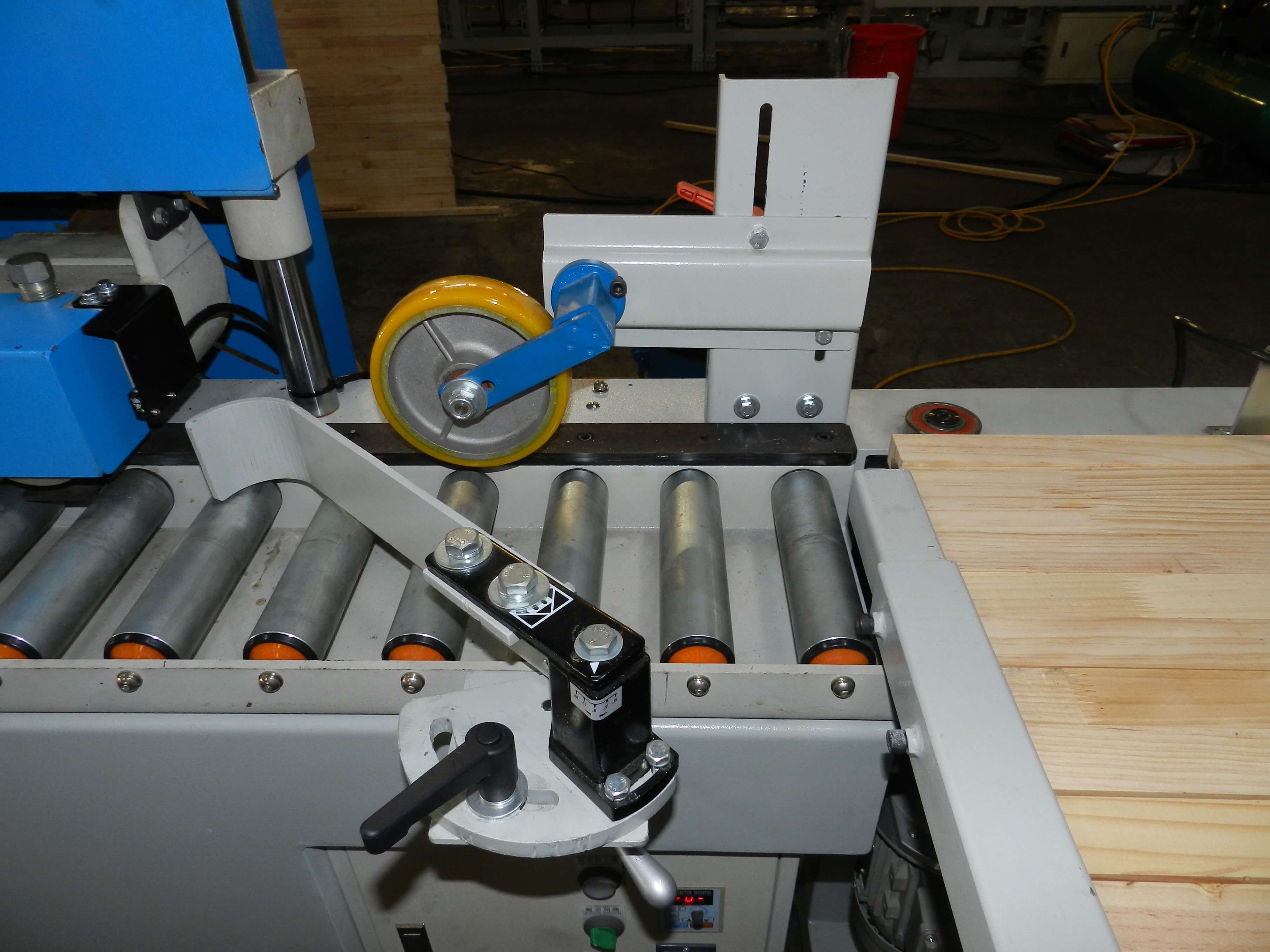 1. Fully automatic single-side edge gluer, 2. Glue Mixer Tank for PVAC and hardener 3. Glue Tank for one component glue. 4. Roller gluing to make sure each piece in even spreading 5. Six sets of automatic feeding roller for stable loading. 6. Speed control from 3 meter to 20 meter/per minutes. |